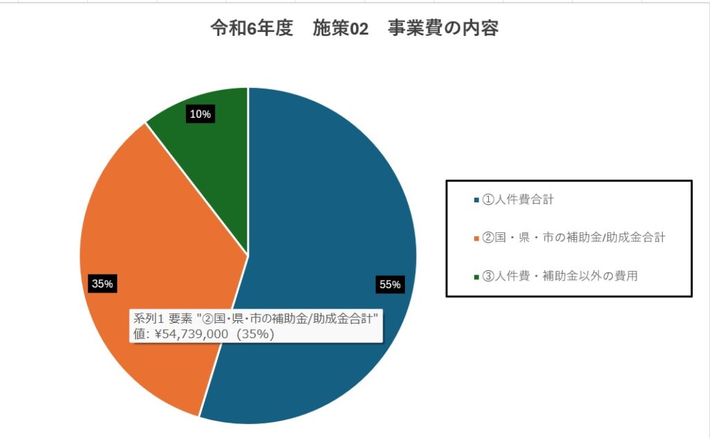 令和6年度 施策02 まとめ この施策も補助金/助成金だけで全体の35%を占める