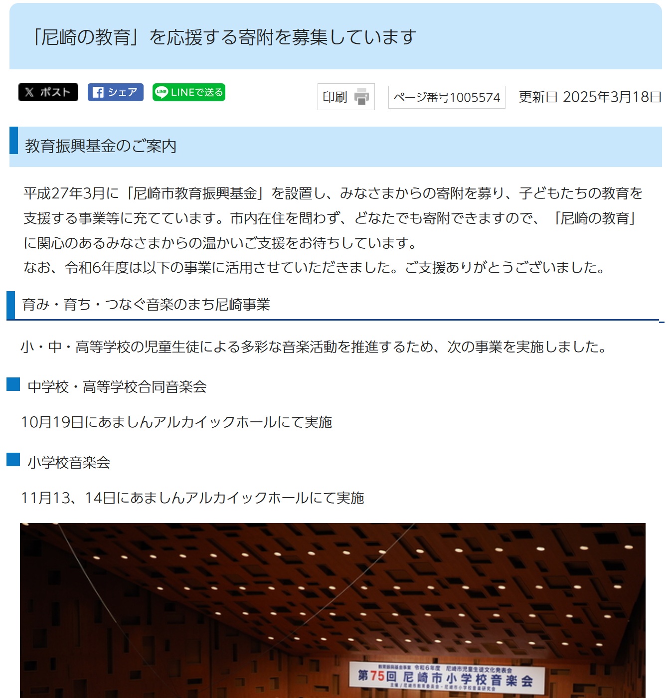 そして、この事業内容も音楽祭の開催であり、しかも市民の寄付によって行われています。これも繰り返しですが、尼崎市の事業には、文化向けのものも多数あり、本来はこれらの事業費によって、このような子供たちの音楽祭も実施されるべきです。