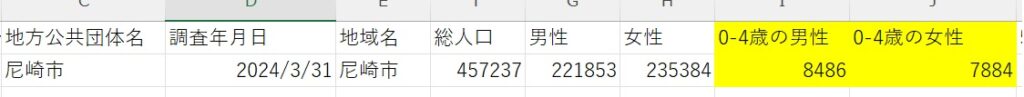 尼崎市の人口データから0~4歳までの男女の数を調べると、2024年(令和6)3月のデータでは下記の値でした。0~4歳児 合計 16,370人
