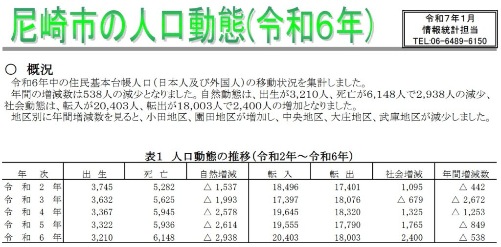 しかしながら、尼崎市の出生数自体は増加しているわけではなく、他の自治体からの移住による「社会増」によって、人口の減少は抑制させているのが現状のようです。