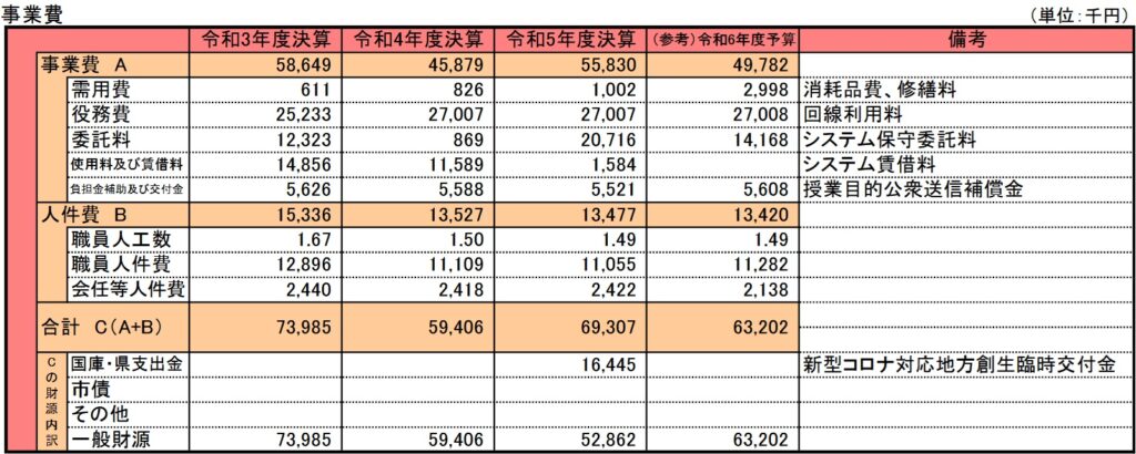 さて肝心の事業費を見ると、この事業の目的にある「コンピュータ・ネットワーク等の環境整備」は進んているハズなのに、なぜか職員人工数・人件費等は変化していません。
