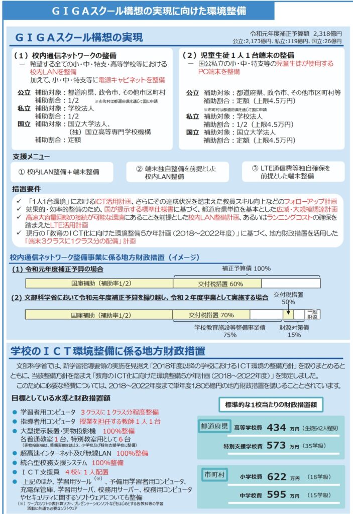 下記は文部科学省の資料 元資料:GIGAスクール構想の実現へ