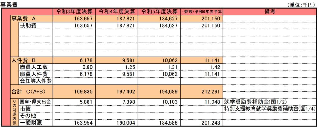 しかしこの資料からは、就学援助認定者が減少していることもわかります。確かに子供の数自体が減少してはいますが、昨今の物価高騰や新たな支援対象項目の追加により、扶助金額が増加しているのでしょう。