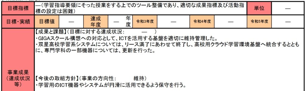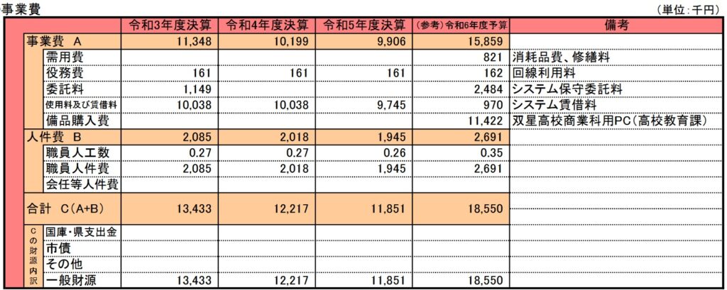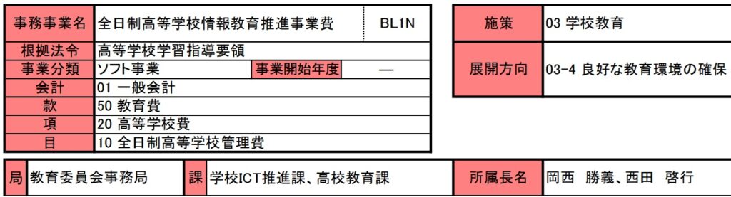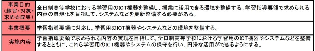 全日制高等学校情報教育推進事業費は開始年度の記載はありませんが、おそらく前回、前々回と投稿した小・中学校情報教育推進事業費と同じ平成12年度ごろからの開始と思います。