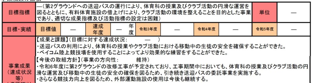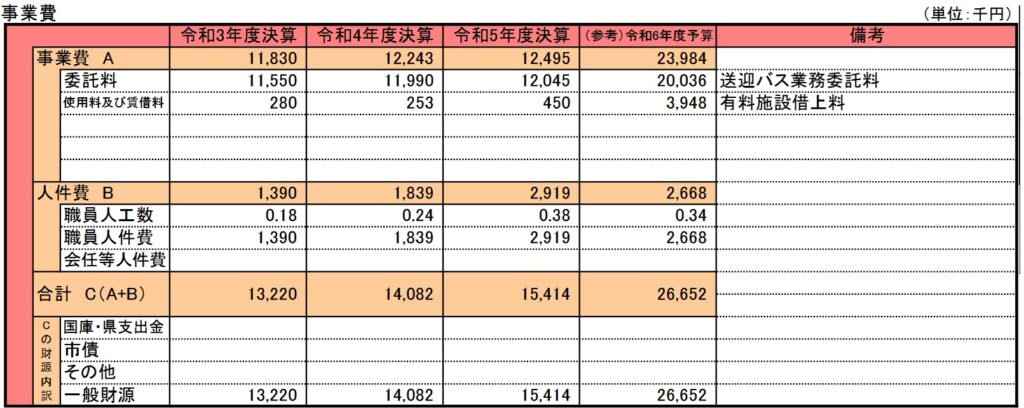この事業を見て疑問に思うのは、冒頭でも紹介した市立幼稚園通園対策事業費の3倍以上の事業費をかけて、高校生の送迎を行っていることです。昭和生まれの自分としては、運動部の高校生であれば、走っていけよ、とは思いますが、安全を考慮してことと思い、送迎事業を行うことは理解できます。