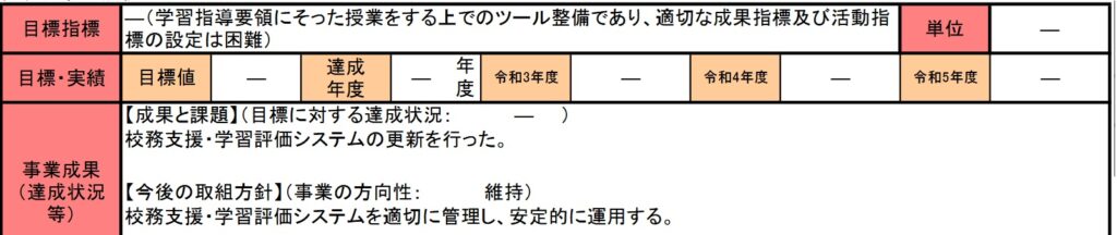 それはこの事業のように、「校務支援・学習評価システムの更新」を報告するだけの成果報告を行っていることからも明らかです。