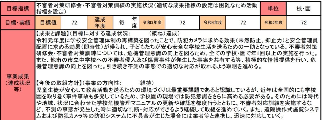 確かに不審者による児童・教員の殺傷事件は記憶に新しいところですが、本来この事業の根拠になった学校保健安全法では、感性症の予防や学校医の勤務についても規定されていることから、”安全”の中に感染症の予防や拡散防止対策を含めてもおいてもおかしくはないと思います。