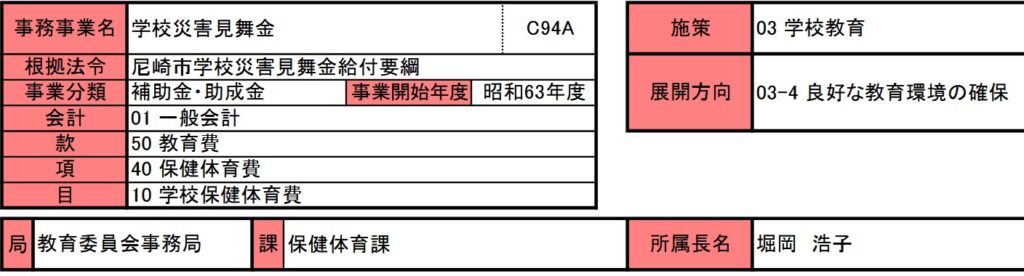 現在はこども家庭庁が、日本スポーツ振興センター災害共済給付制度によって学校や教育・保育施設の管理下の災害における見舞金の交付を行っていますが、尼崎市ではそれに加えて、独自の見舞金をこの事業で行っています。