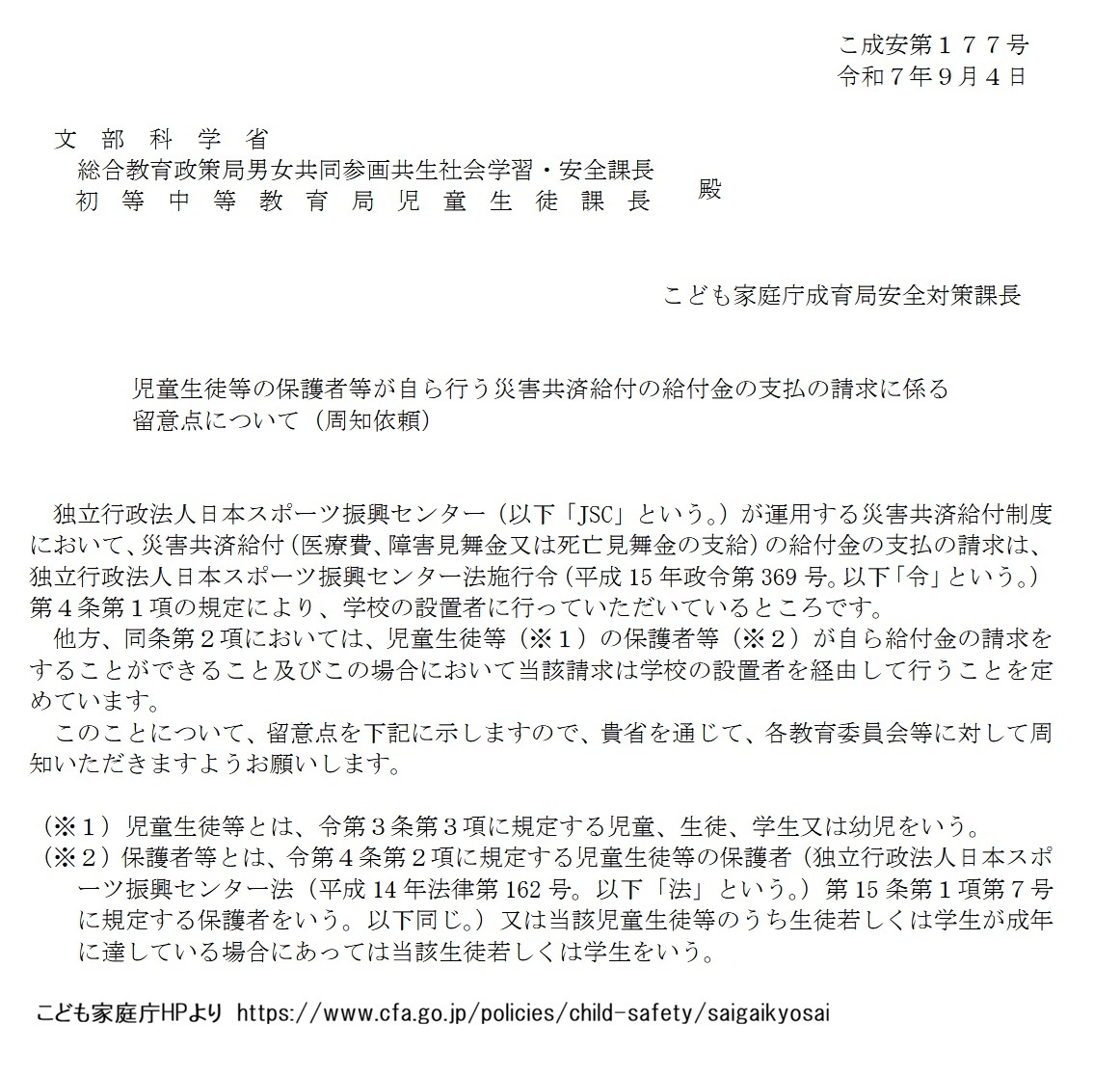 学校や教育・保育施設の管理下の災害における災害共済給付制度 こども家庭庁HP