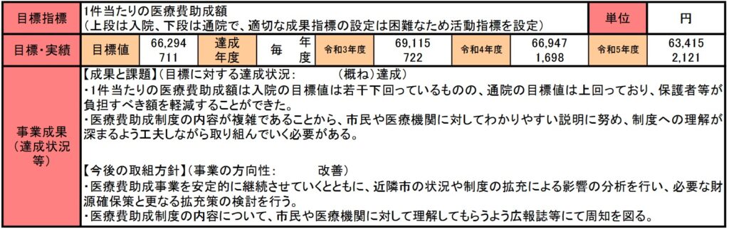 当然、このことによって事業目的である「受給者の保健の向上と福祉の増進」が成功したわけではありません。単に、事業成果で書かれた「財源確保」と「更なる拡充策」が成功しただけです。