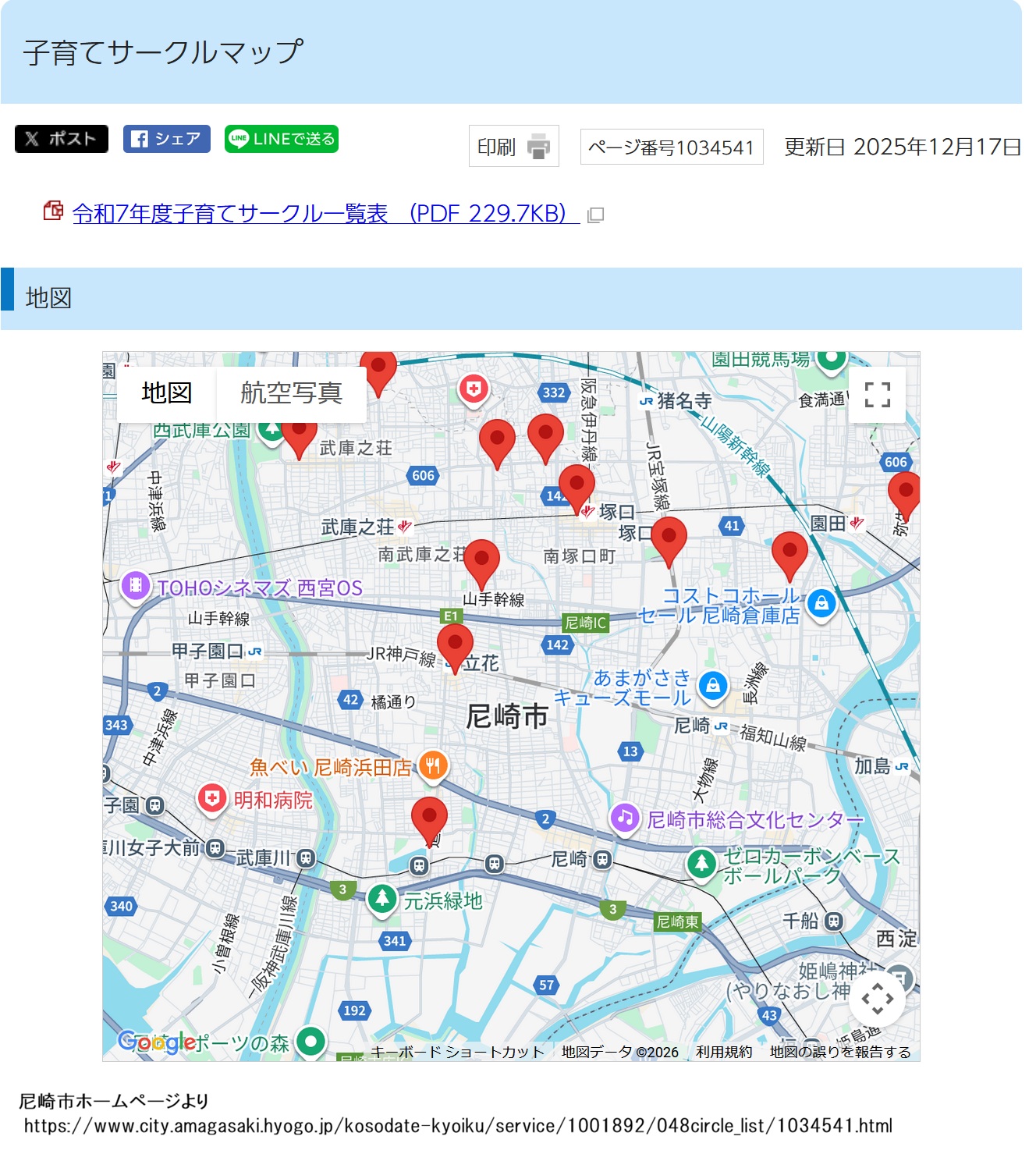 事業目的にある、「地域における子育て支援」のため、市内各所に子育てサークルを開設して、それらに補助金を配るこの事業。各サークルは尼崎市のホームページに公開されており、現状では12のサークルが公開されています。(2026年1月現在)