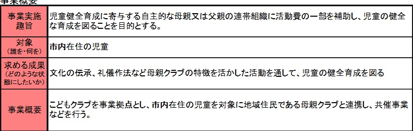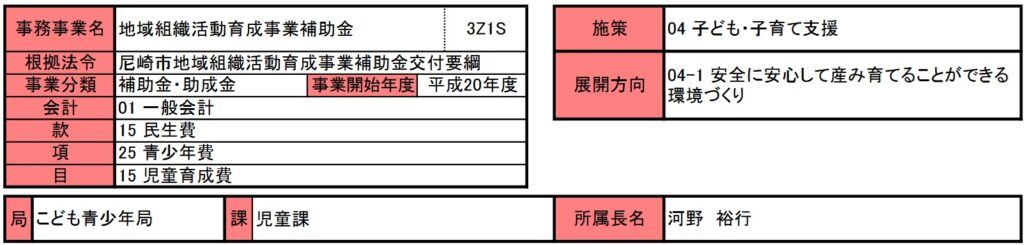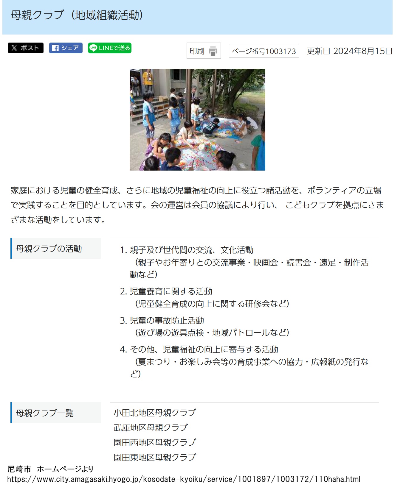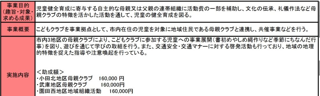 地域組織活動育成事業補助金は平成20年度開始の事業です。尼崎市内の母親クラブへの活動費を市が支援している事業です。