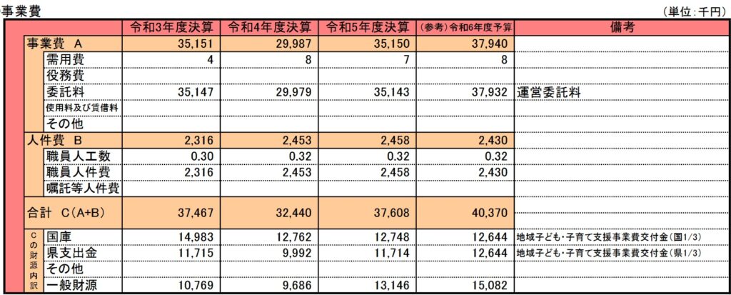 行政側の思惑通り?に事業費は順調?に増額しています。事業の利用者数自体は、先ほど書いた通りに減少しています。それでも国と県からの交付金は増額が行われており、公金チューチューは順調に拡大しております。