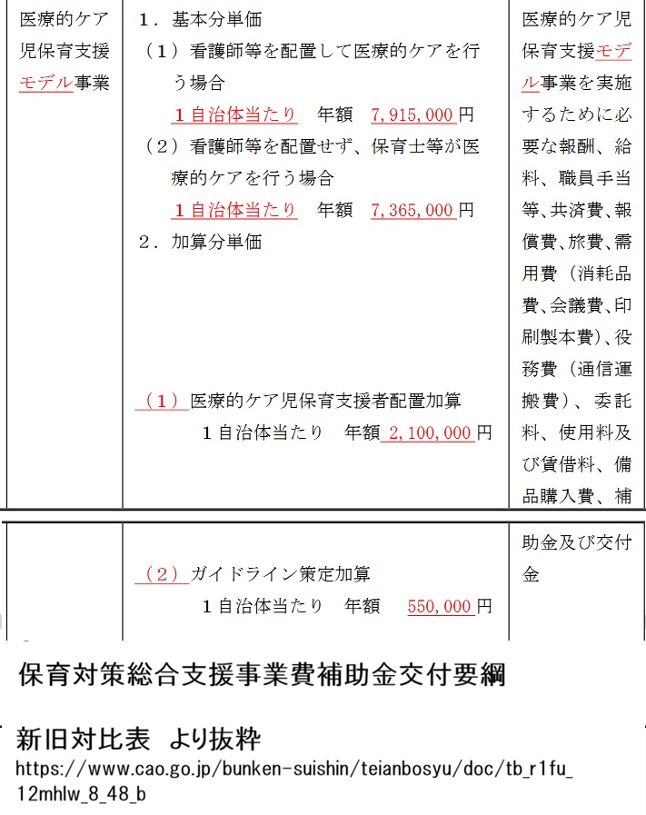 交付金は余った税金ですから、本来であればこのような事業を行う以前に、規制改革をして、専門医療が提供できる学校や、学校施設を備えた医療機関が事業として成り立つ社会環境を整備すること、更にケアが必要な子供たちがいる家庭には、生活が安定するまで減税をする。それこそが、真の支援ではないでしょうか。