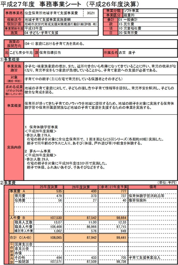 下記は平成27年度のこの事業の事務事業評価シート
