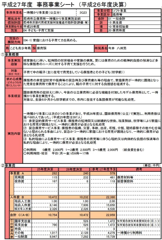 下記は平成27年度の事務事業評価シート