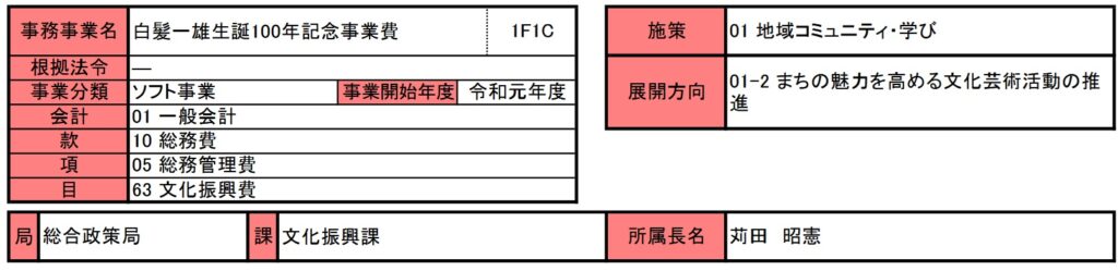 来年度以降の事務事業評価の結果を確認する必要はありますが、市が今回のような事務事業目的や点検結果を作成し、今後もこの事業が名前や形を変えて継続するのであれば、郷土の偉人をネタにした税金の無駄使いになる可能性が高いと思います。