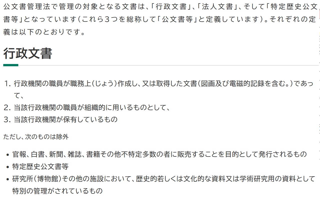 今回も博物館関連で歴史的公文書等管理・公開事業費です。令和4年度から開始した事業であり、国の公文書管理法では対処になる行政文書のうち下記3種類は除外されています。
