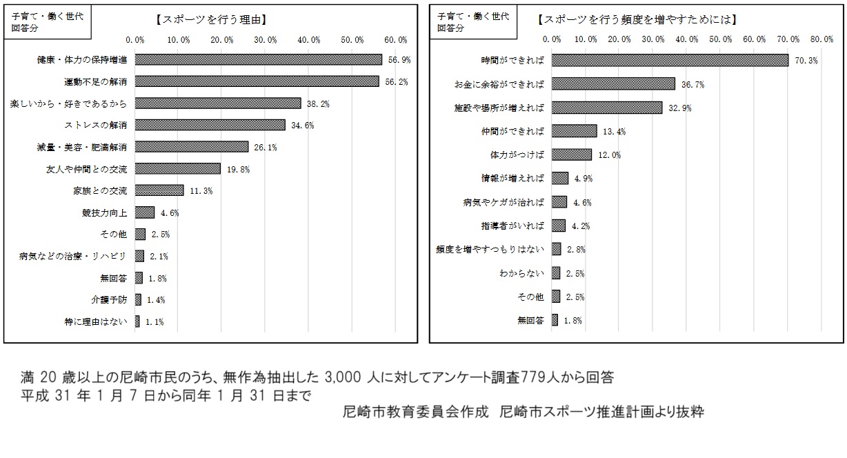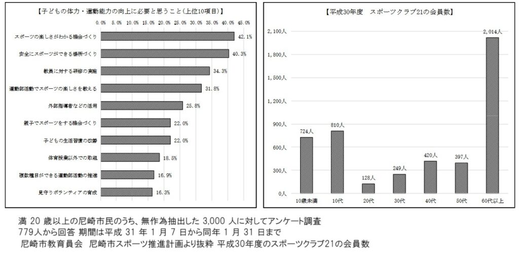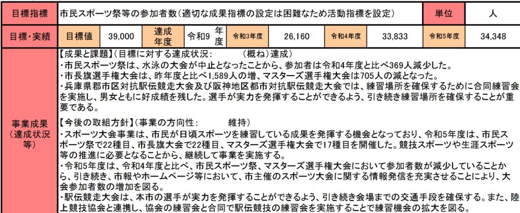 尼崎市の教育員会は平成22年度から10か年計画として『尼崎市スポーツ推進計画』を実施していたようでその結果報告書を平成2年度にまとめています。尼崎市スポーツ推進計画 尼崎市ホームページより