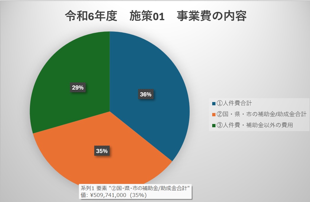 以下は施策01の各事業の費用の内約。