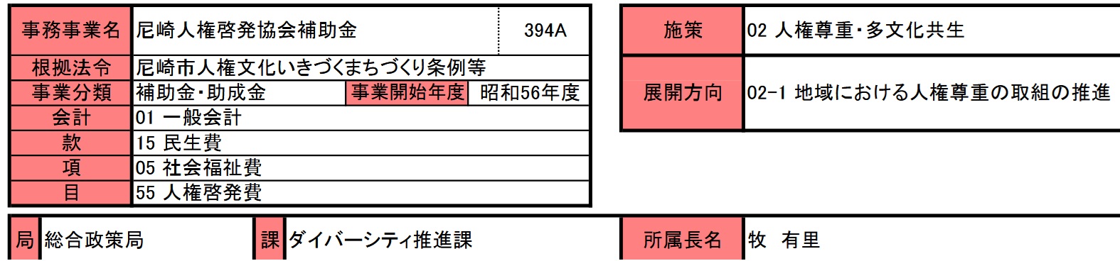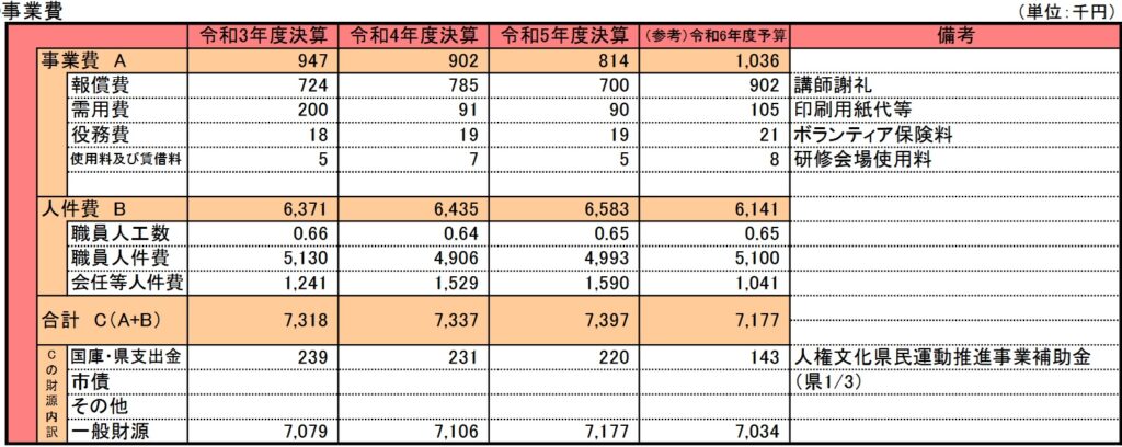 上述したようにこの事業内容にあるような市民リーダーの役割は本来であれば法人の会員が担うべきと思います。その為に尼崎人権啓発協会補助金にて市から補助金が交付されているのですし、その設立趣意書の内容からも積極的に人権問題に取組む人材を育成・補助するべきは法人にあるはずです。前回も記載したようにこのような重複する事業を継続するのではなく、廃止や一本化することで税金の削減や市職員の業務軽減にもつながると思いますが、安易に継続の判断をしているということはこの事業も国や県からの補助金交付を続けるために事業を継続しているのではないのかと思います。