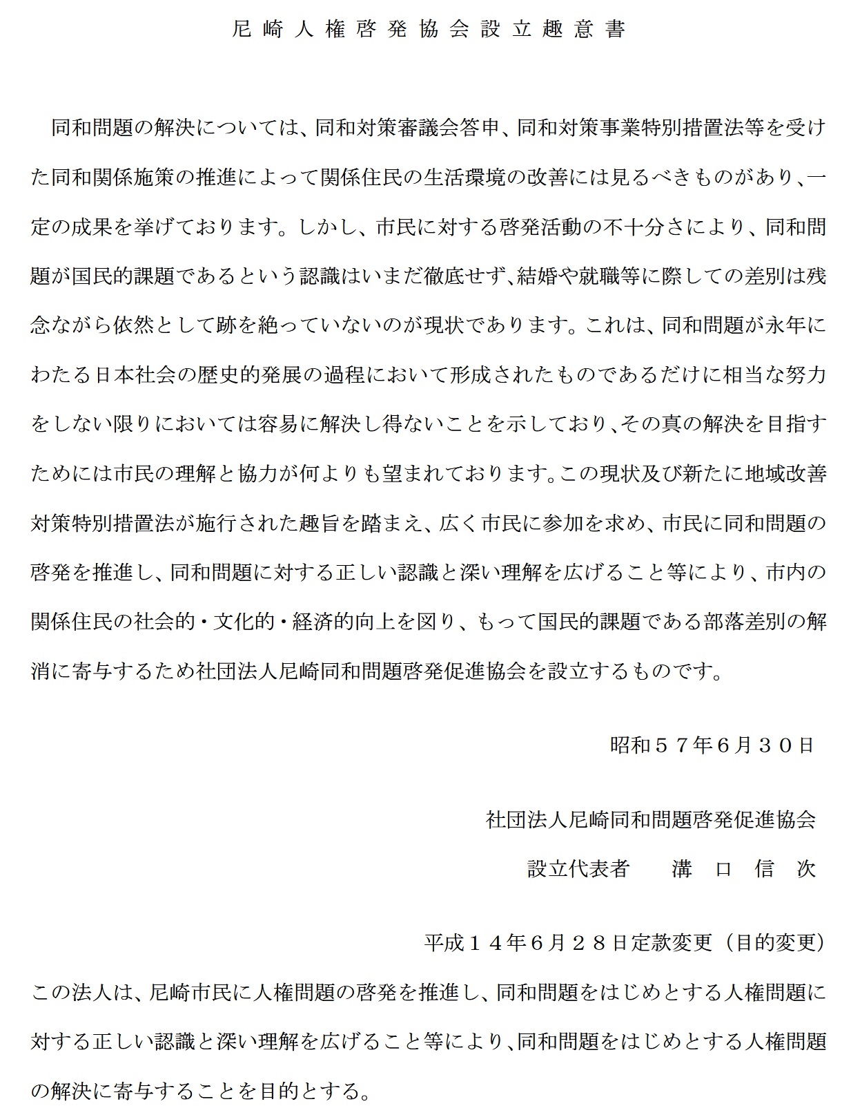 今回も人権関係事業で昭和44年度から開始された事業の人権啓発リーダー育成事業費です。こちらの事業も前回の投稿で触れた尼崎人権啓発協会補助金・人権啓発活動事業費と重なってくる事業内容です。前回指摘した公益社団法人尼崎人権啓発協会(以下法人と記載)の活動内容とこの事業も重複しているどころか本来であれば法人に所属する会員が率先して行わなければならないと思われるリーダーの役目を、この事業費で育成するという内容です。アイキャッチには同法人の設立趣意書を記載しました。法人は当初同和問題に対応するために設立されたようですが、いまの設立趣意書では『尼崎市民に人権問題の啓発を推進し~以下省略~寄与することを目的とする』と記載されている以上、この事業内容にあるようなリーダーの役割は法人に所属する会員が担うべきと思います。そしてまたもこの事業にも国や県からの補助金が交付されており、この補助金交付を続けるためにこの事業を継続しているだけなのではないのかと思います。