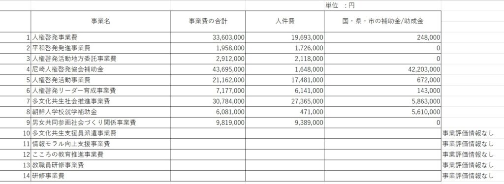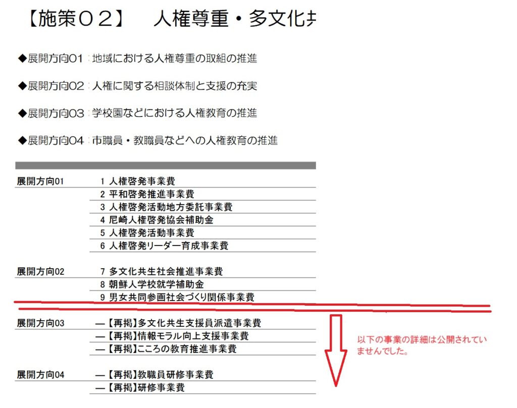 その為、人権尊重や多文化共生は理解できるものの、それらを隠れみのにして無限に税金をよくわからない・効果が不明な事業に投入している可能性があります。現にいままで投稿した事業の内容を見ていくと、重複したような事業や『啓発』『啓蒙』『発進』等の名称がついた事業の多いことに気づくと思います。今回思い切って施策02の事業をすべて廃止にした場合の一人当たりでの減税可能だった金額も記載したのは、このような社会的な合意が十分でない分野向けに行われている事業だけで一体いくらの税金を費やしているのかを理解頂きたかったからです。