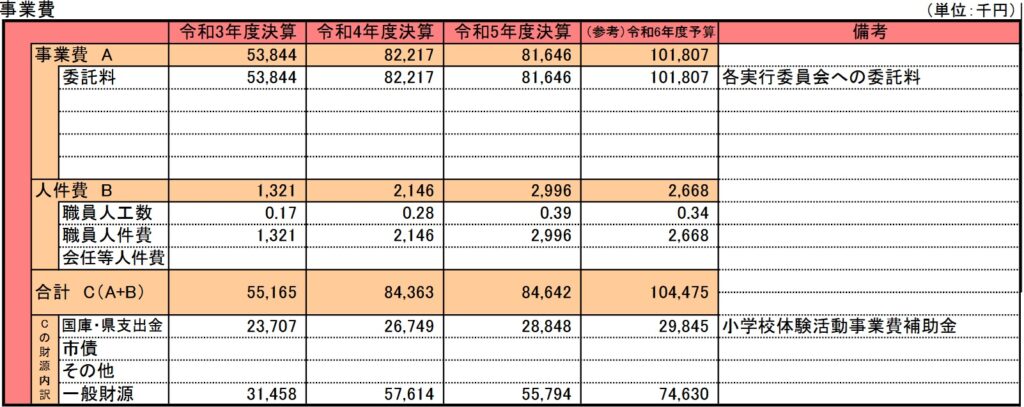 冒頭に記載したとおり、この事業は国からの補助金が出されております。もしこの補助金が中止した場合は同じ規模の体験学習を継続するのでしょうか?継続する場合、市の財政負担は当然増えます、それに対して今のような事務事業評の内容で、市民に対して明確な説明を行えるだけの知見や根拠を市や市の担当職員はもっているのでしょうか?
