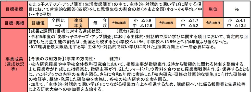 この目標指標にあるあまっ子ステップ・アップ調査の結果は公開されていましたの共有しておきます。