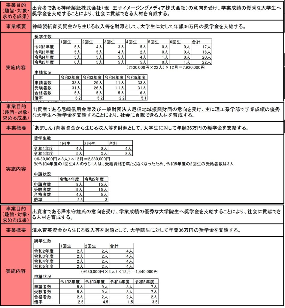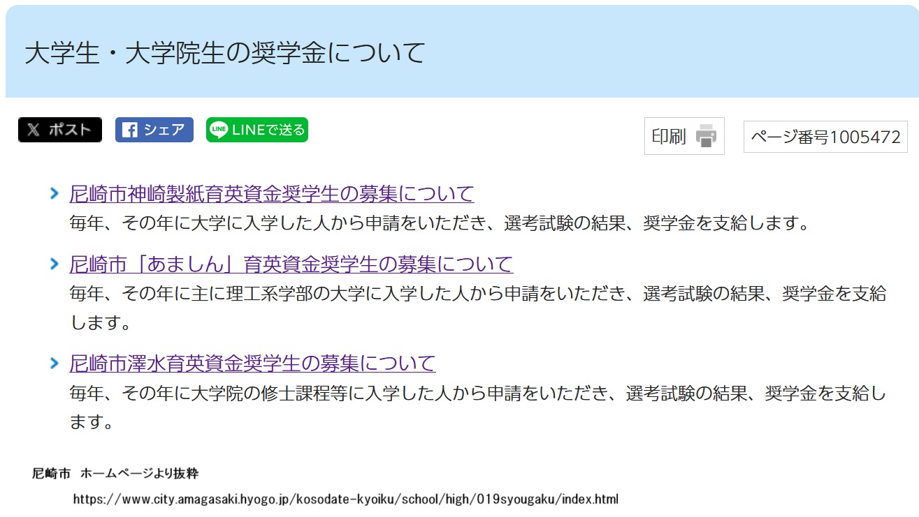 尼崎市の奨学金事業3件